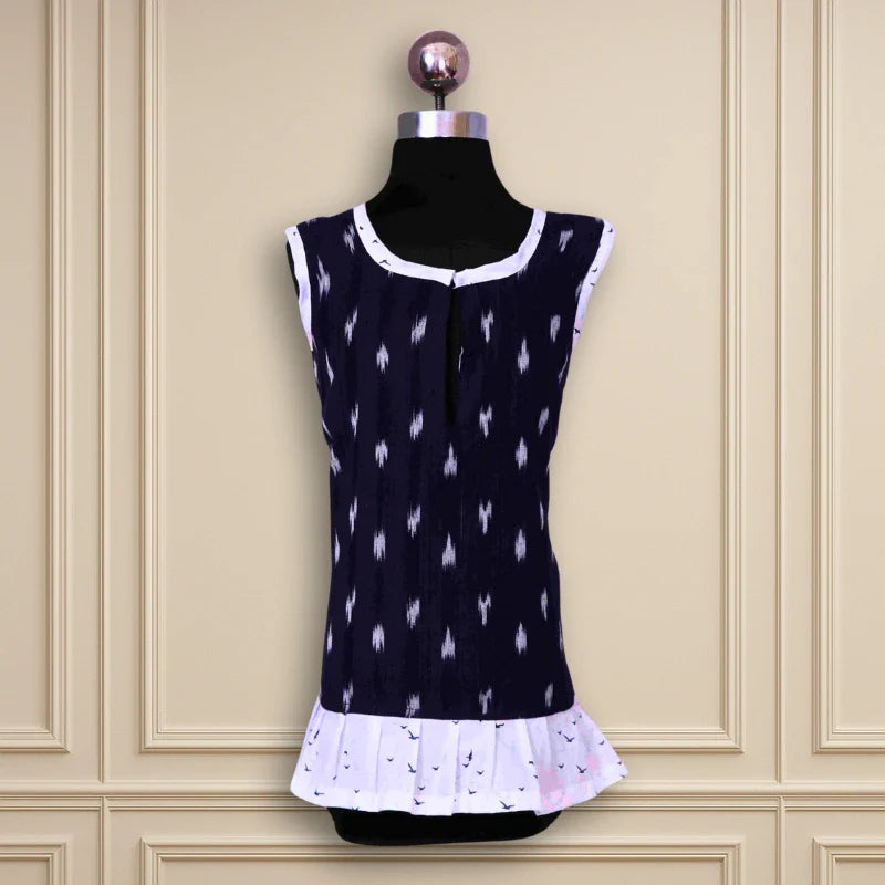 Beautiful casual wear A-line ikkat frock navy blue body