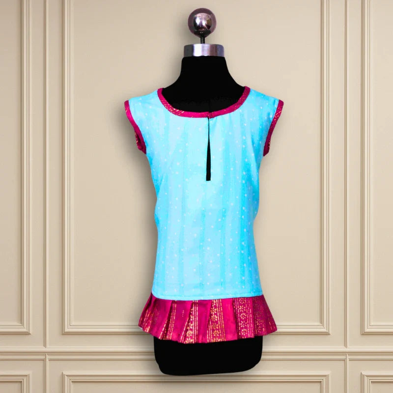 Beautiful Blue and Pink Daily Wear A-line Frock